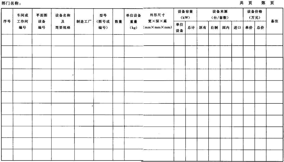 C.0.1 工藝設(shè)備清單應(yīng)符合表C.0.1的規(guī)定。