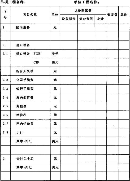 C.0.6 工藝設(shè)備及安裝工程概算表應(yīng)符合表C.0.6的規(guī)定。
