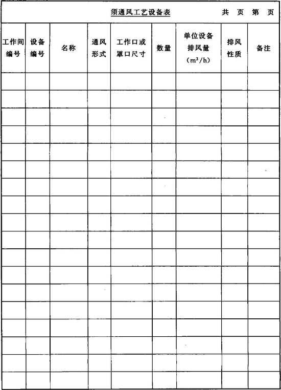 表C.0.14 須通風(fēng)工藝設(shè)備表