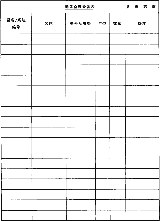 表C.0.16 通風(fēng)空調(diào)設(shè)備表