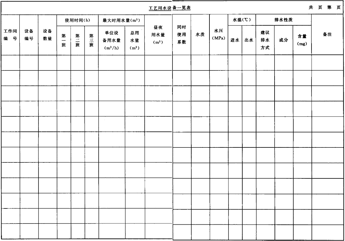 表C.0.13 工藝用水設(shè)備一覽表