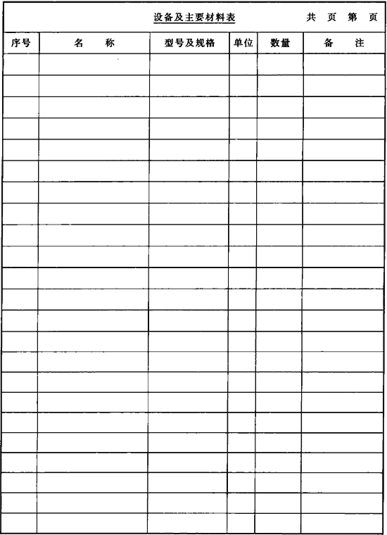 表C.0.12 設(shè)備及主要材料表