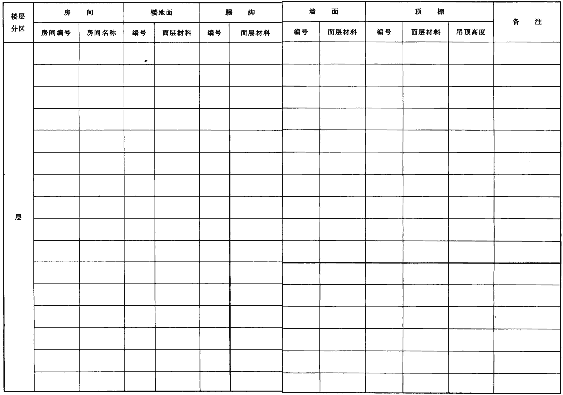 表C.0.9 室內(nèi)裝修表