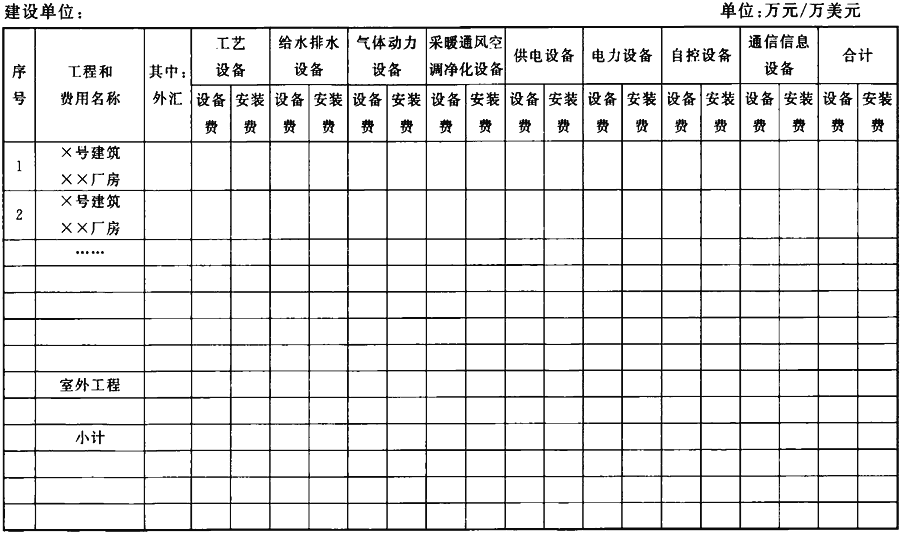 C.0.5 設(shè)備安裝工程綜合概算表(分工藝設(shè)備和公用設(shè)備)應(yīng)符合表C.0.5的規(guī)定。