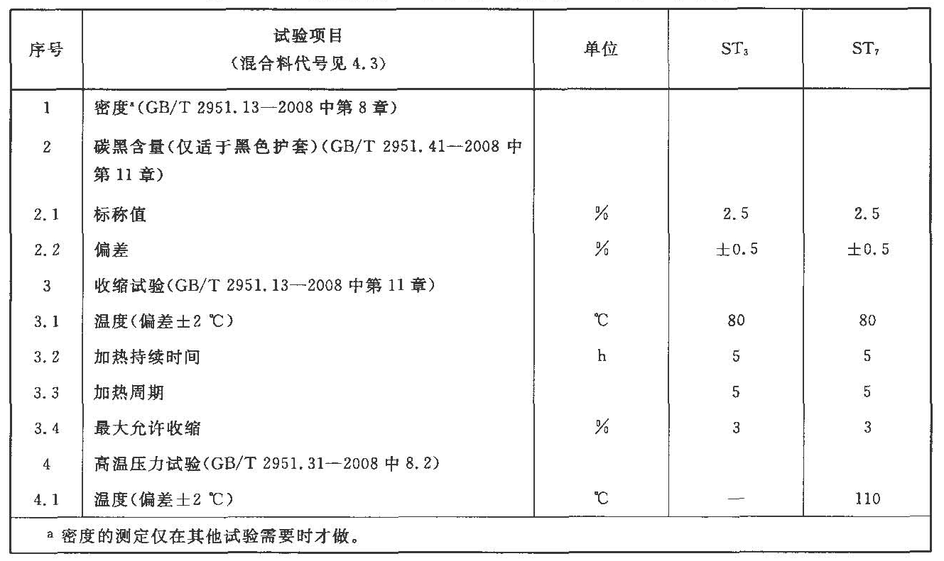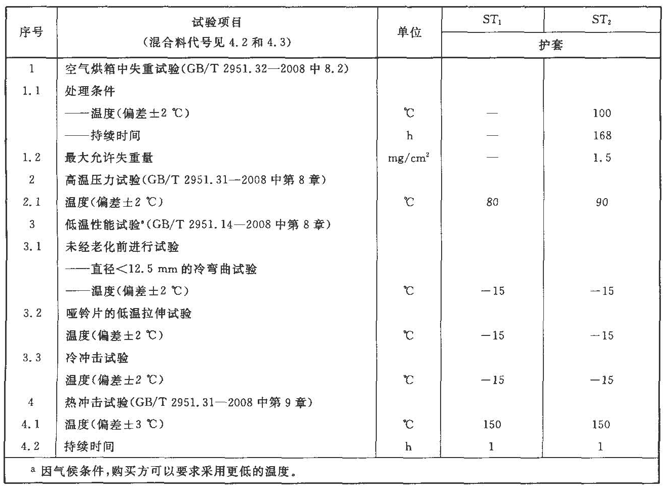 表21 無鹵護(hù)套混合料的特殊性能試驗要求