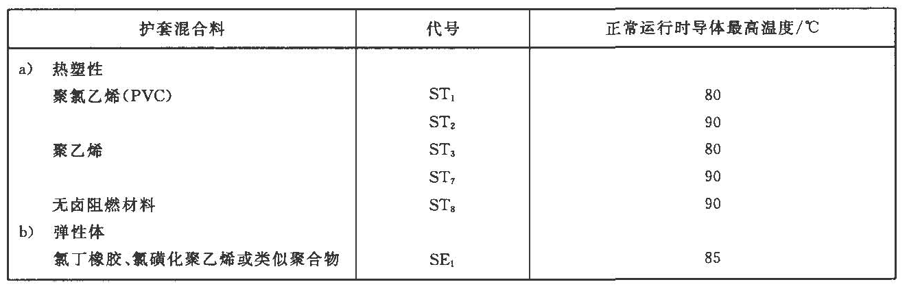 本部分不同類型護(hù)套混合料電纜的導(dǎo)體最高溫度列于表4中。