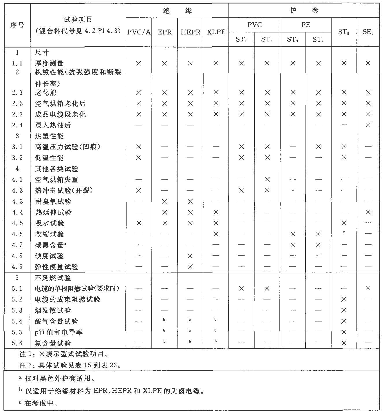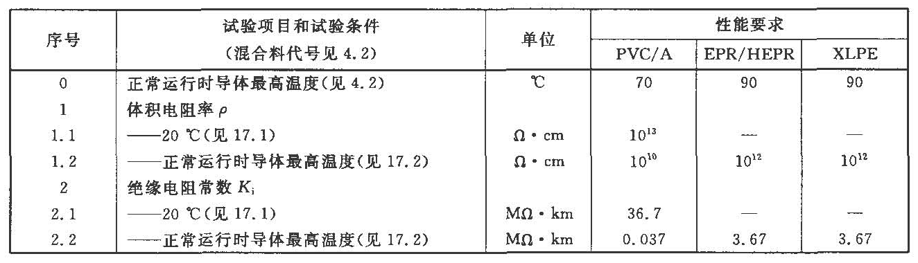 無鹵電纜的絕緣應(yīng)符合表23的規(guī)定。