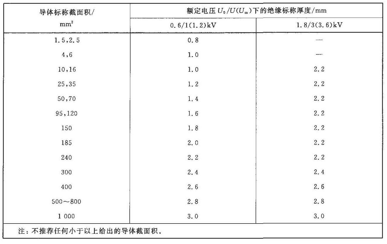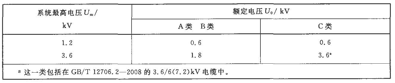 注:上述電壓的表示方法是合適的。盡管在一些國家采用其他的表示方法。例如:1.7/3 kv或1.9/3.3 kV代替1.8/3 kV。