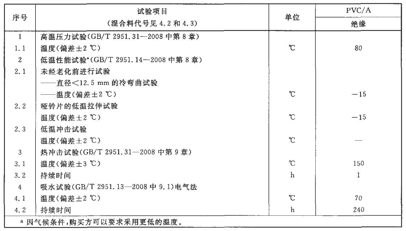 表19 PVC護(hù)套混合料特殊性能試驗要求