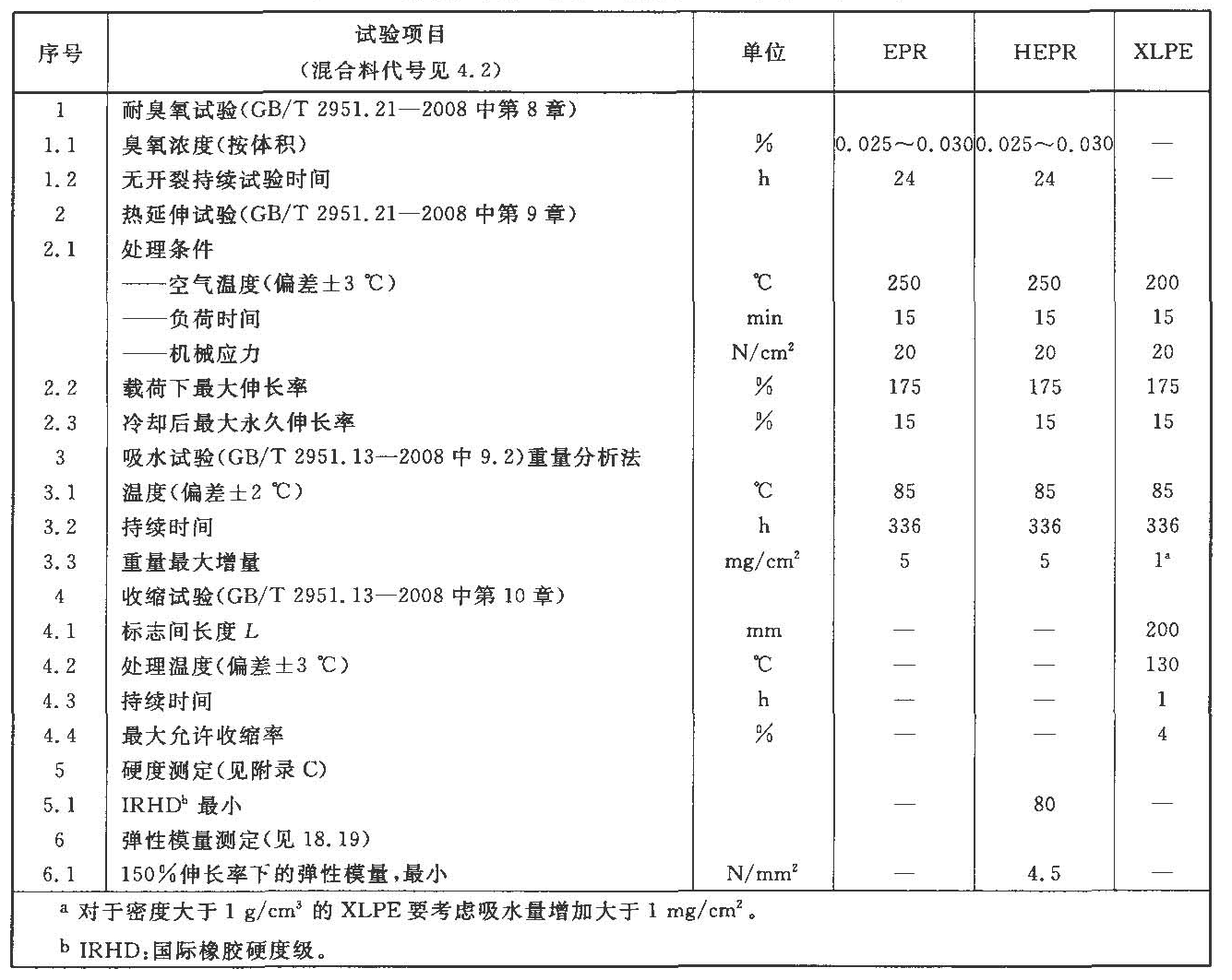 c)EPR、HEPR和XLPE絕緣及彈性體護(hù)套的熱延伸試驗(見16.9)。