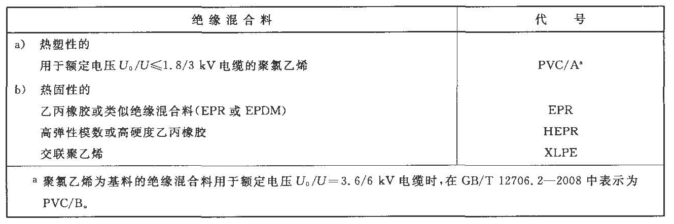 絕緣應(yīng)為表2所列的一種擠包成型的介質(zhì)。