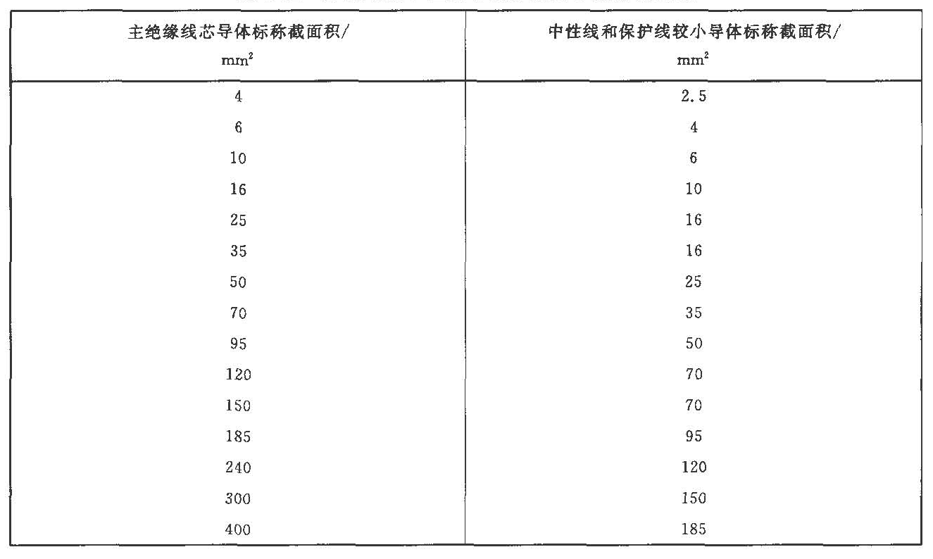 D.2 多芯電纜中性線和保護(hù)線導(dǎo)體標(biāo)稱截面積