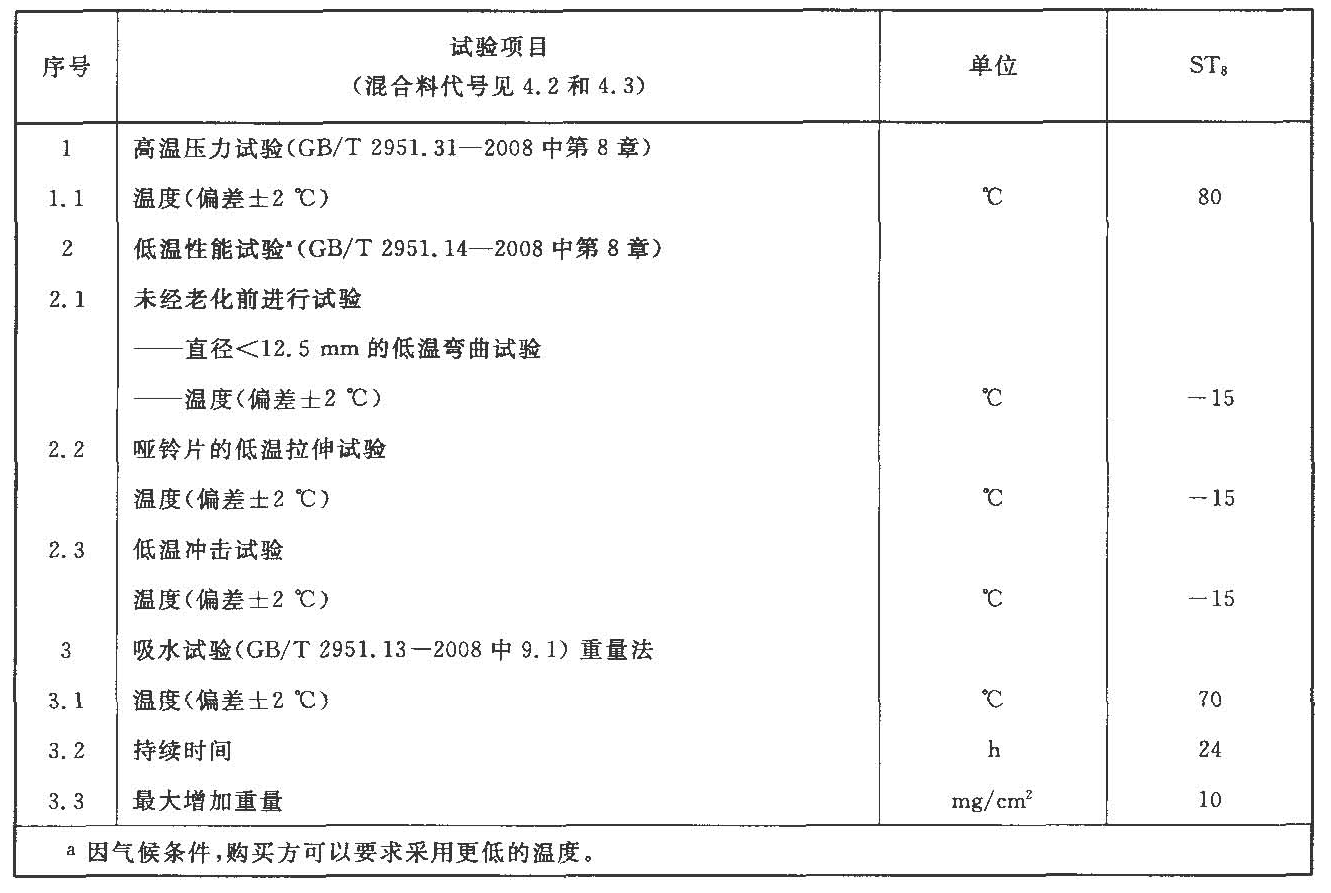 表20 PE(熱塑性聚乙烯)護(hù)套混合料的特殊性能試驗要求