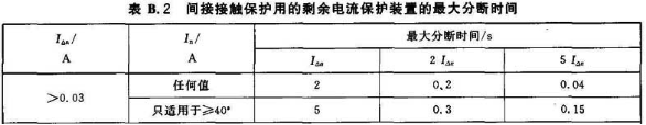 間接接觸保護用剩余電流保護裝置的最大分斷時間如表B.2。