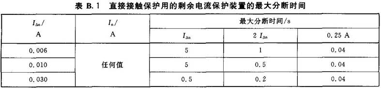 直接接觸補充保護用的剩余電流保護裝置,其最大分斷時間如表B.1。