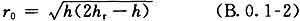 2 當(dāng)接閃桿高度h大于hr時(shí),應(yīng)在接閃桿上取高度為hr的一點(diǎn)代替單支接閃桿針尖作為圓心,并應(yīng)符合本條第1款的規(guī)定)。式(B.0.1-1)和式(B.0.1-2)中的h應(yīng)將hr代入。