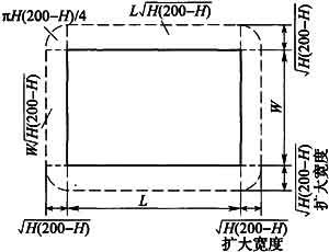 1 農(nóng)村民居每邊的擴(kuò)大寬度和等效面積應(yīng)按下列公式計(jì)算確定(見圖A.0.3):