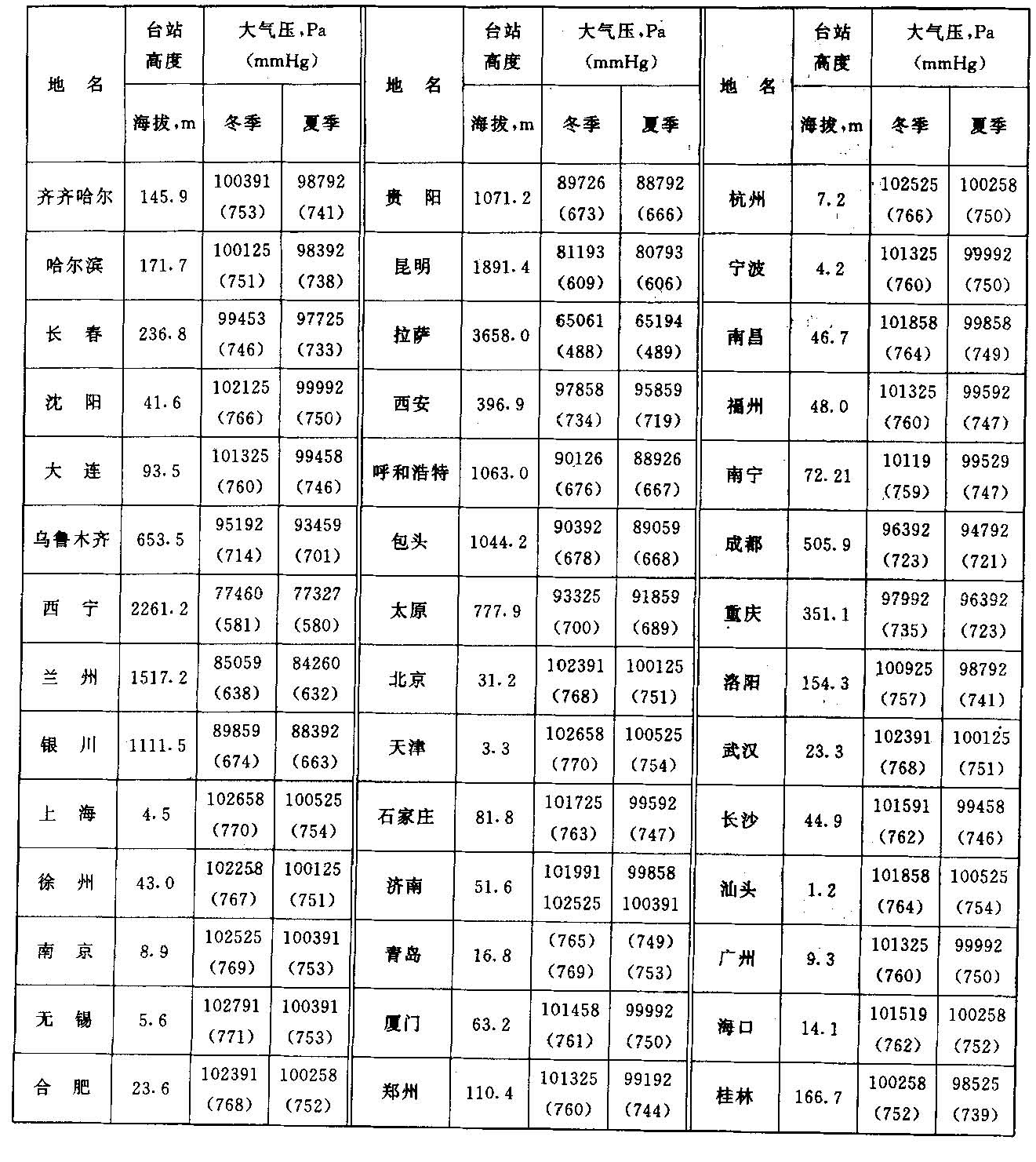C1 全國各主要城市的海拔高度和當(dāng)當(dāng)?shù)卮髿鈮毫σ姳鞢1。