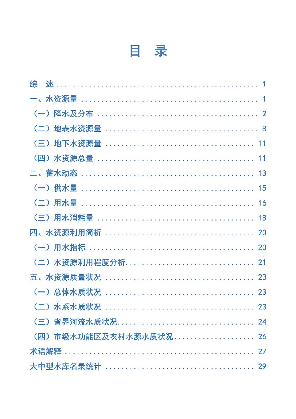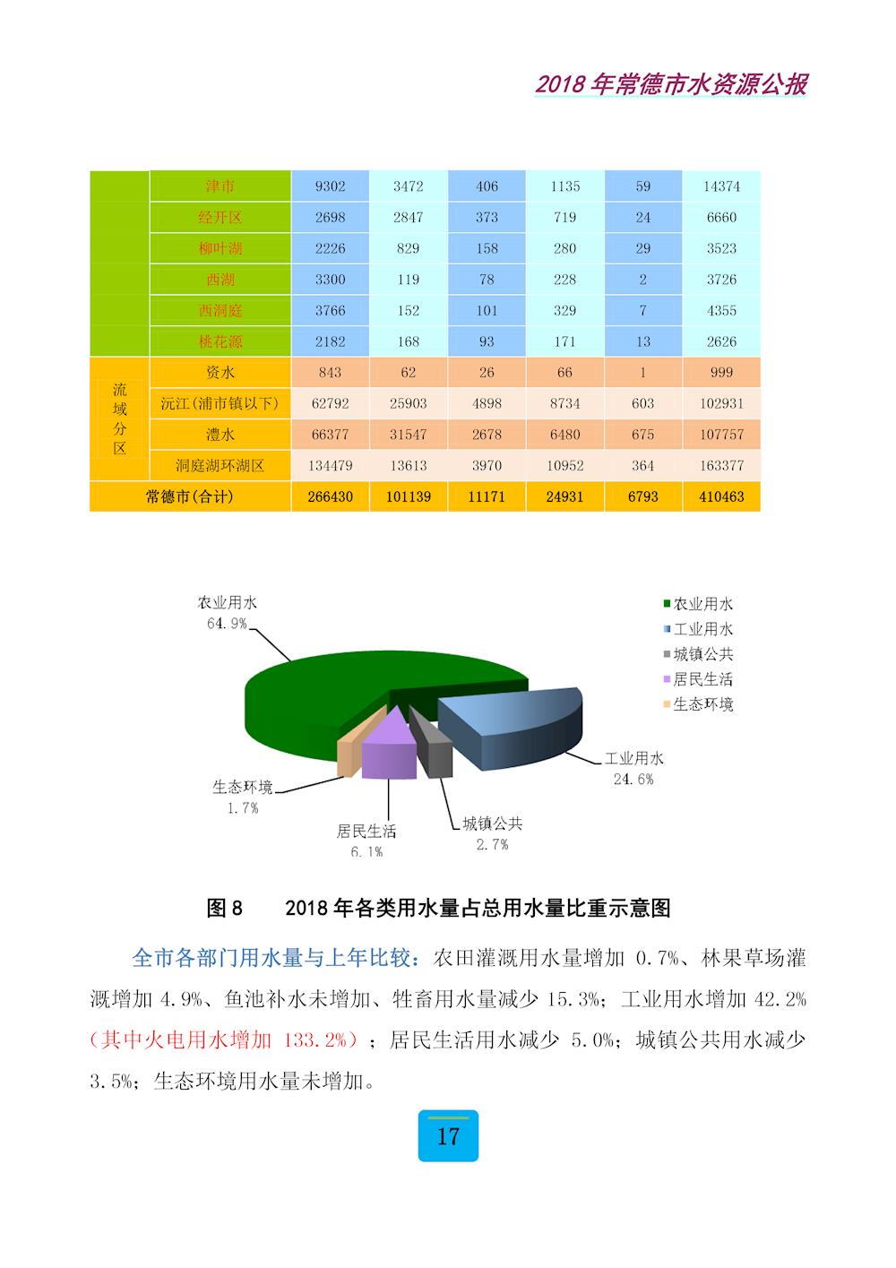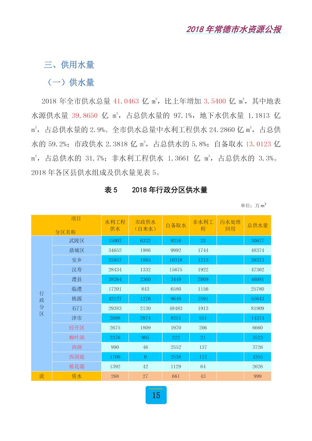 供用水量 全市供水總量41.0461億m2,比上年增加3.5400億m,其中地表水源供水量39.8650億m,地下水供水量1.1813億m2;全市用水總量為41.0463億m,農(nóng)業(yè)用水26.6428億m、工業(yè)用水10.1139億m2(其中火電4.5574億m3)、城鎮(zhèn)公共用水1.1170 億m、居民生活用水2.4931億m2、生態(tài)環(huán)境用水0.6793億m;全市用水消耗量15.3258 億m3,耗水率為37.3%。