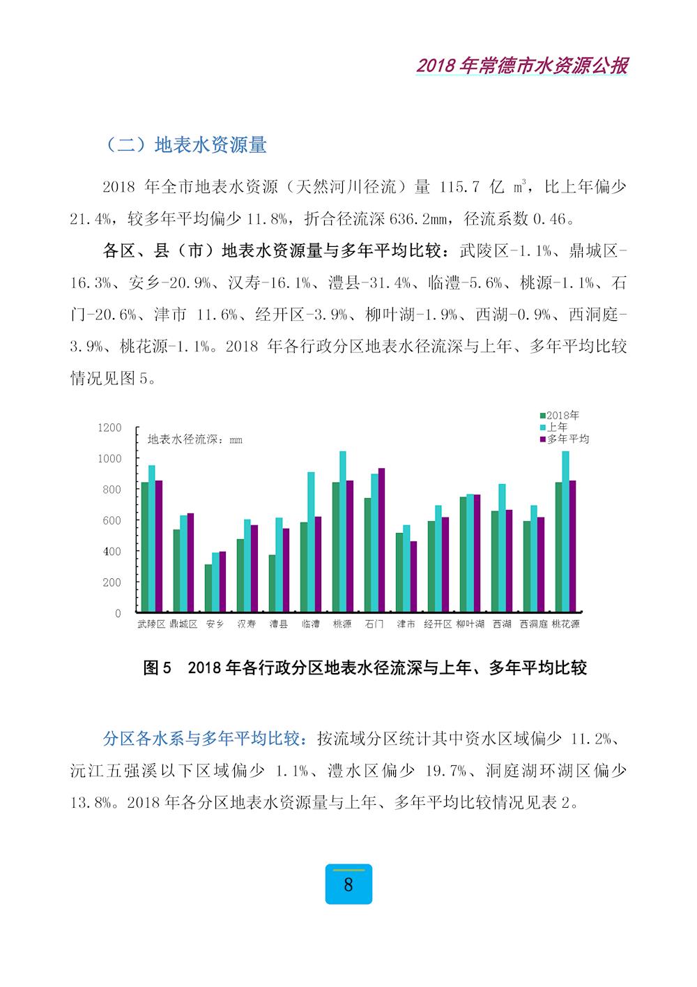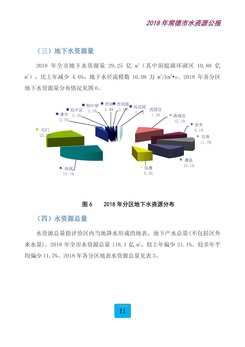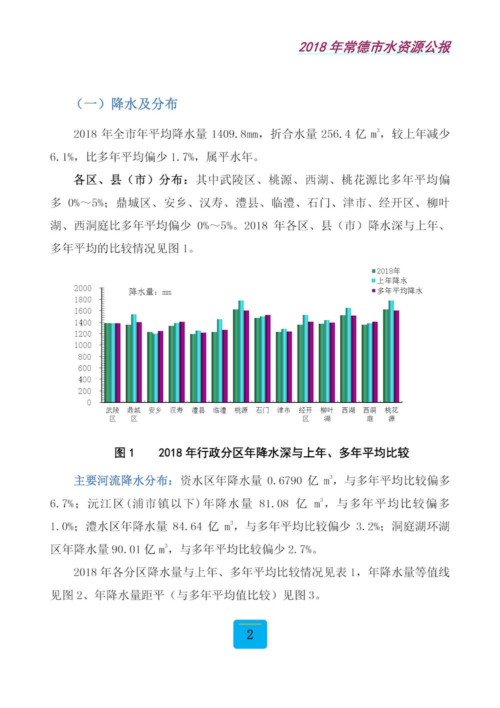 水資源量 2018 年全市年降水量1409.8mm,較上年減少 6.1%,比多年平均偏少1.7%,屬平水年;地表水資源量115.7億m2,上年偏少21.4%,比多年平均偏少11.8%;地下水資源量29.25億m,地下水重復(fù)計(jì)算量26.84億m,水資源總量118.1億m。