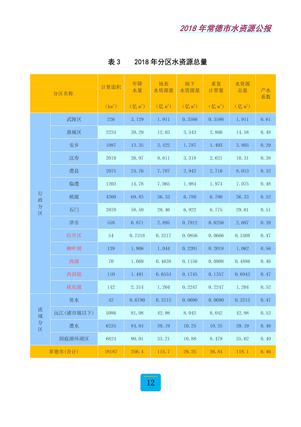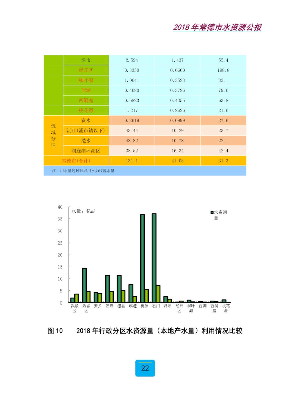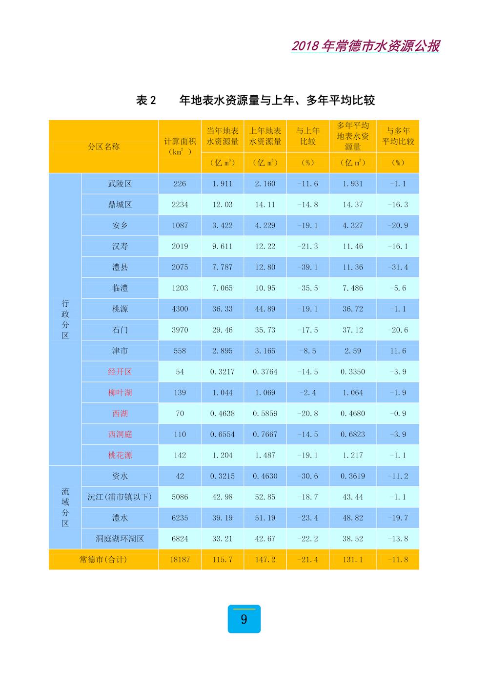 水資源量 2018 年全市年降水量1409.8mm,較上年減少 6.1%,比多年平均偏少1.7%,屬平水年;地表水資源量115.7億m2,上年偏少21.4%,比多年平均偏少11.8%;地下水資源量29.25億m,地下水重復(fù)計(jì)算量26.84億m,水資源總量118.1億m。