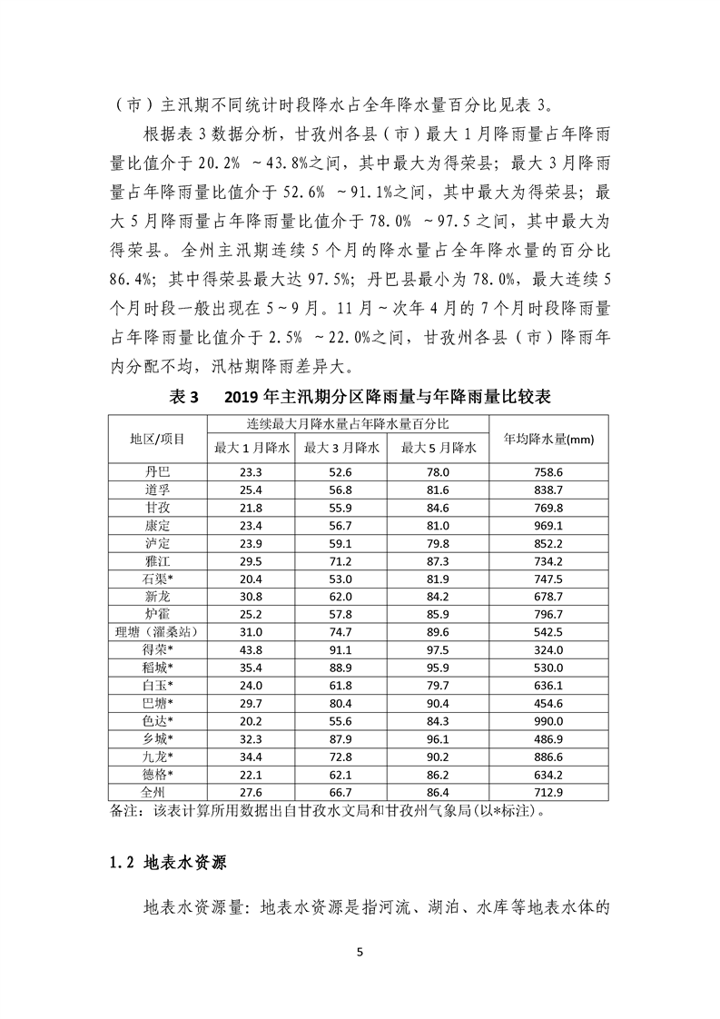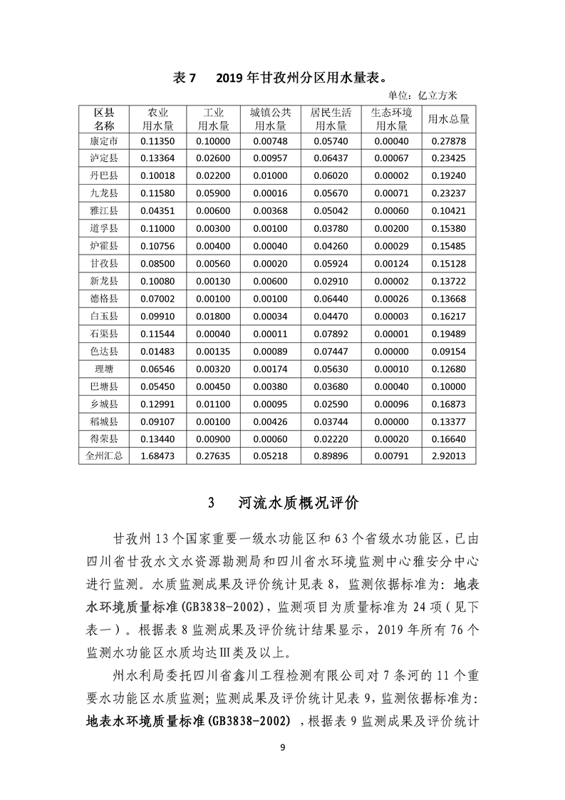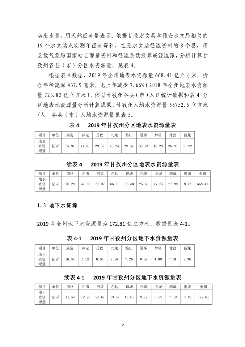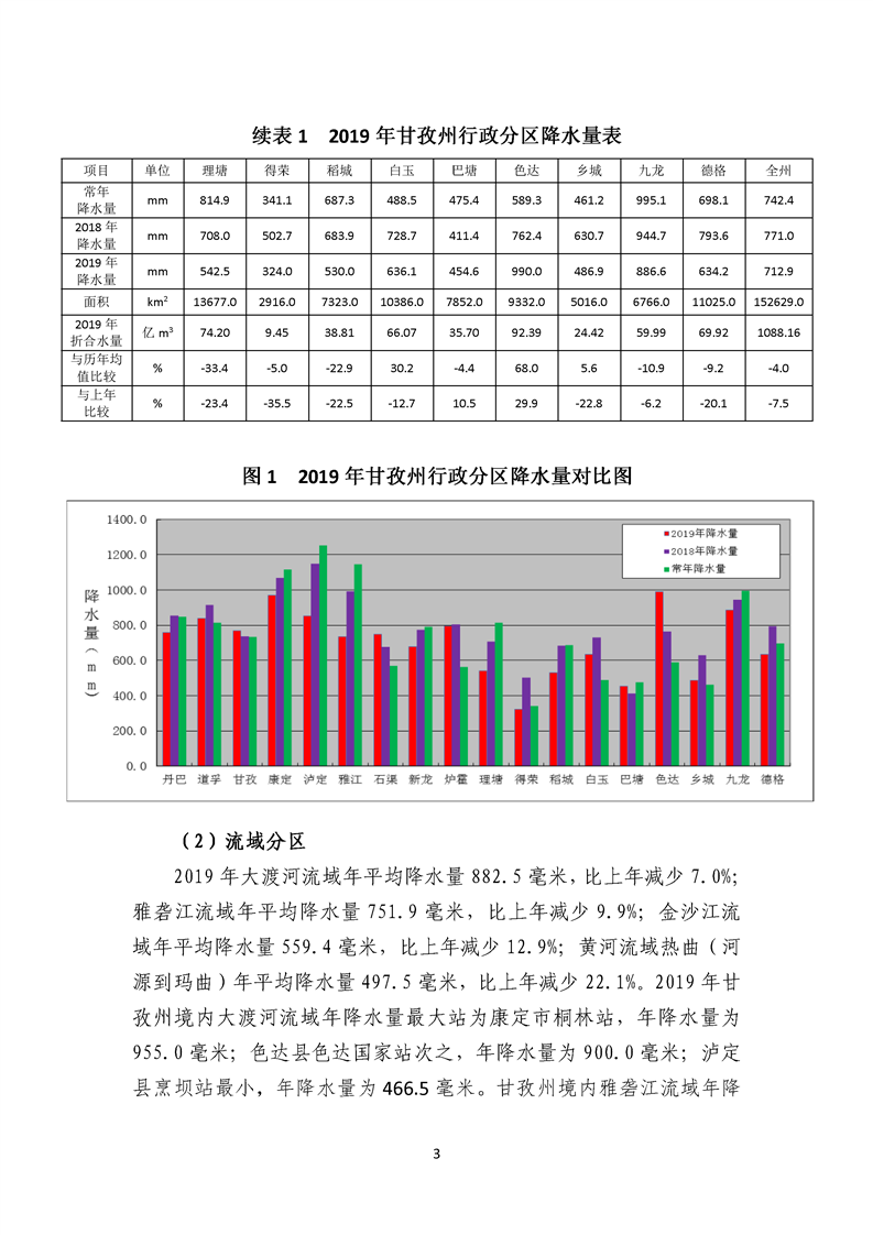 2019年四川省甘孜藏族自治州水資源公報(bào)