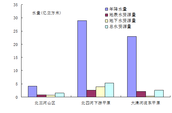 從水資源分區(qū)看,各分區(qū)地表水資源量均比上年偏少,其中北四河下游平原偏少最大,為50.96%;與多年平均值比較,各分區(qū)均偏少,其中北三河山區(qū)偏少最大,為51.38%。