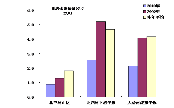2010年全市地表水資源量5.58億立方米,比上年度偏少47.31%,比多年平均偏少47.61%。