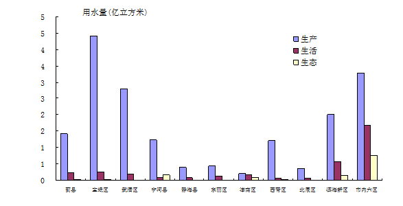 按用途分,其中居民生活2.53億立方米,城市公共1.75億立方米,工業(yè)用水4.50億立方米,城市環(huán)境1.06億立方米。