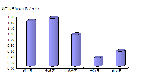 圖8 2011年天津市行政分區(qū)地下水資源量