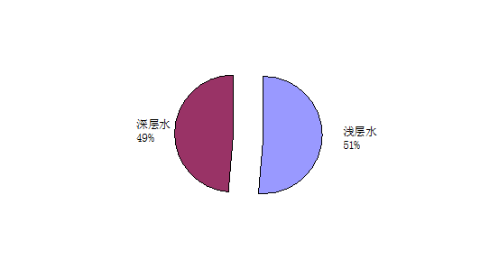 在地表水源供水中,蓄水工程供水0.25億立方米,引水工程供水8.28億立方米,提水工程供水6.53億立方米,引黃調(diào)水1.71億立方米;地下水源供水中,淺層地下水2.99億立方米,深層地下水2.83億立方米。2011年天津市地表水源和地下水源供水組成見圖15、16。