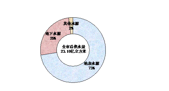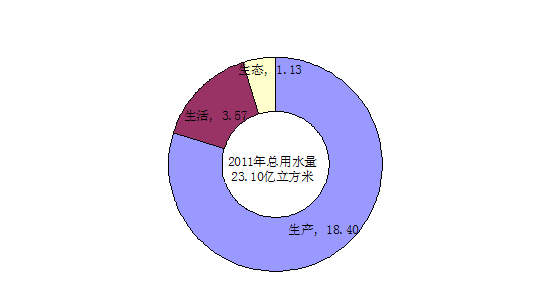 2011年全市用水總量23.10億立方米,其中生產(chǎn)用水18.40億立方米,生活用水3.57億立方米,生態(tài)用水1.13億立方米。