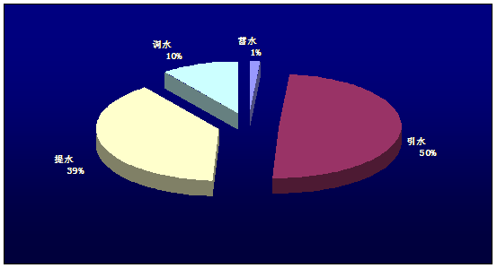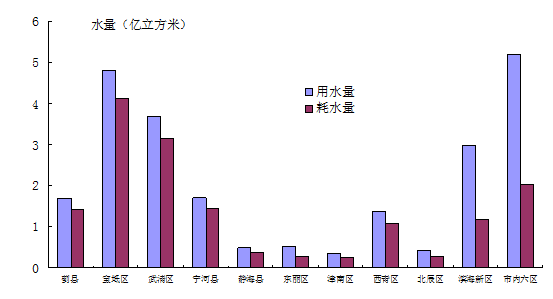生產(chǎn)用水中,第一產(chǎn)業(yè)用水11.80億立方米,其中農(nóng)田灌溉用水11.34億立方米,林果灌溉用水0.21億立方米,牲畜用水0.25億立方米;第二產(chǎn)業(yè)用水5.26億立方米,其中工業(yè)用水5.01億立方米,建筑業(yè)用水0.25億立方米;第三產(chǎn)業(yè)用水1.34億立方米。