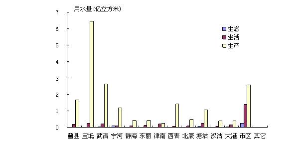 圖16 2006年天津市行政分區(qū)用水量組成圖