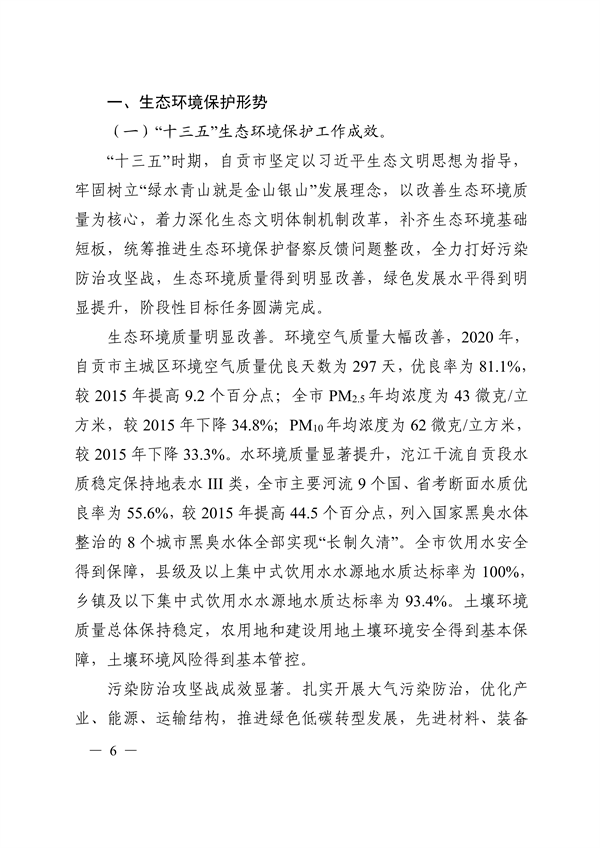 《自貢市“十四五”生態(tài)環(huán)境保護(hù)規(guī)劃》印發(fā)