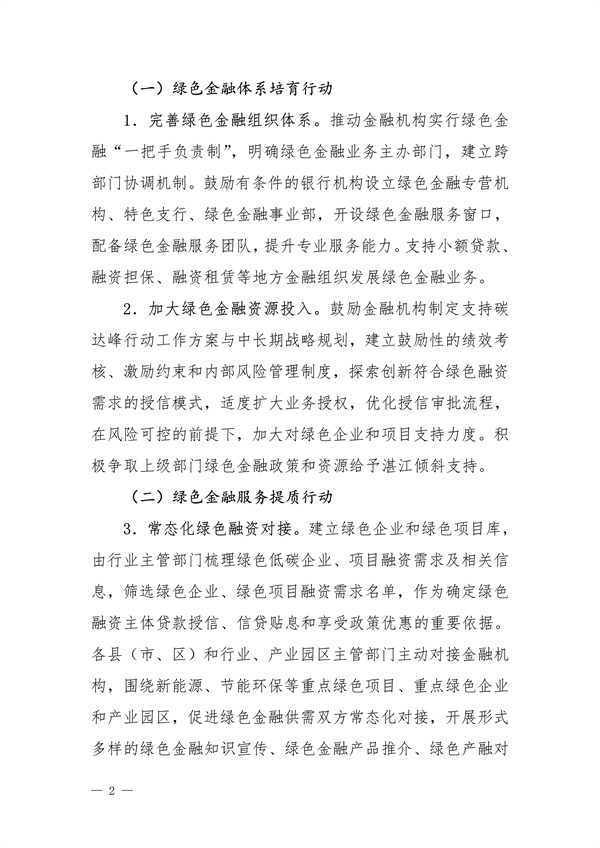 湛江市發(fā)展綠色金融支持碳達(dá)峰行動實(shí)施方案(征求意見稿)