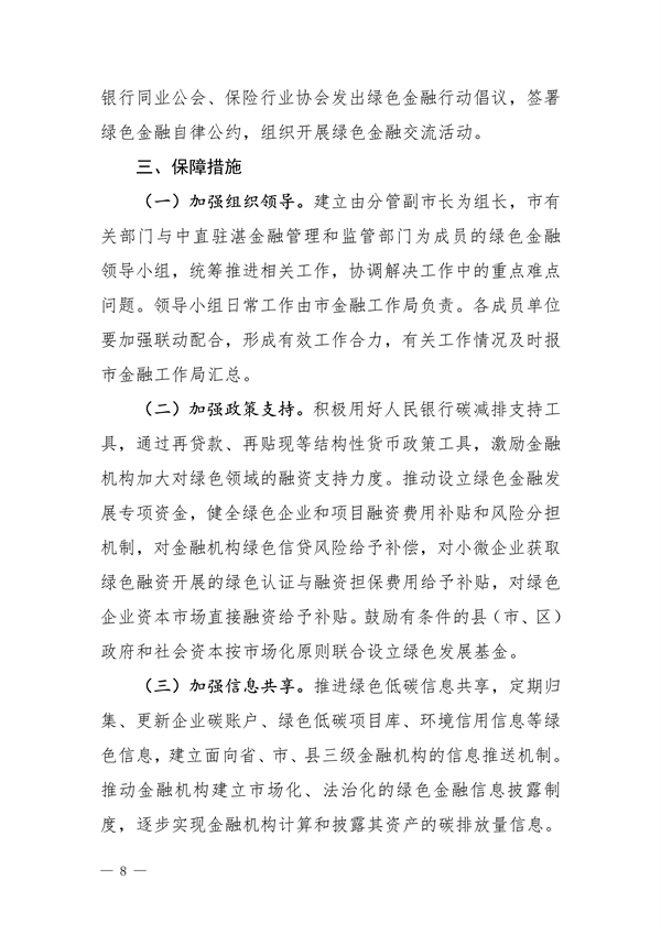 湛江市金融局發(fā)布《湛江市發(fā)展綠色金融支持碳達(dá)峰行動實(shí)施方案(征求意見稿)》,詳情如下: