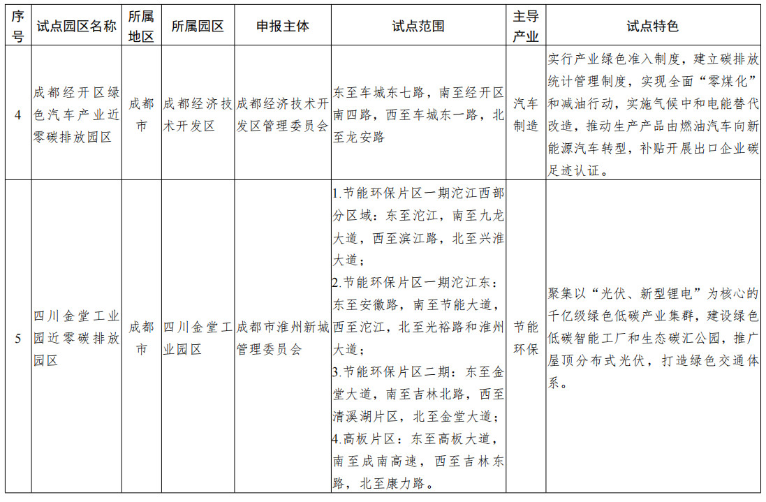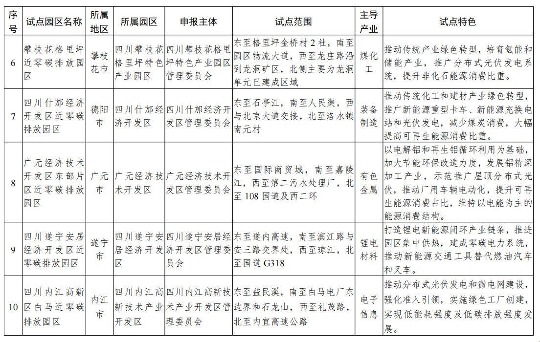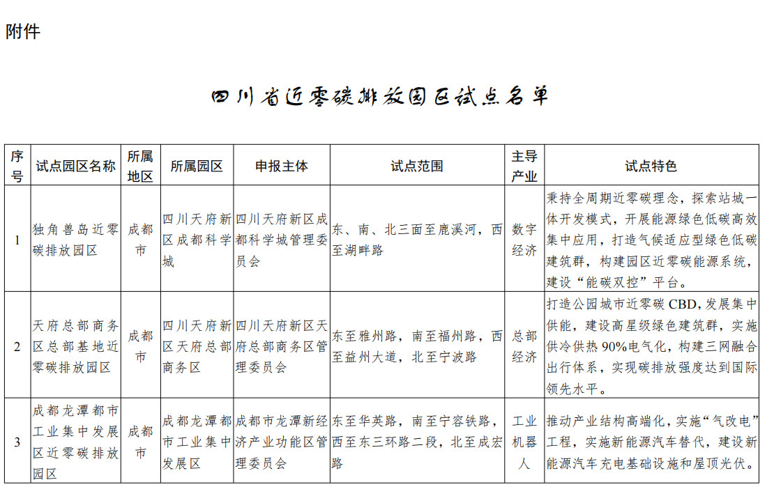 附件:四川省近零碳排放園區(qū)試點(diǎn)名單