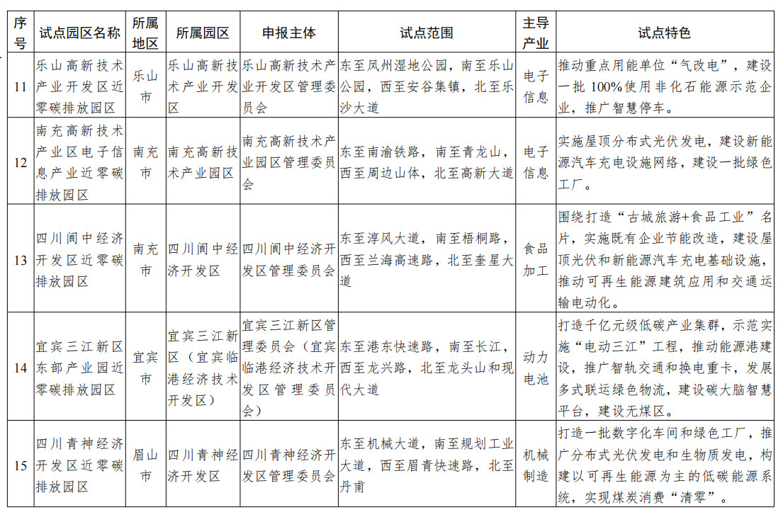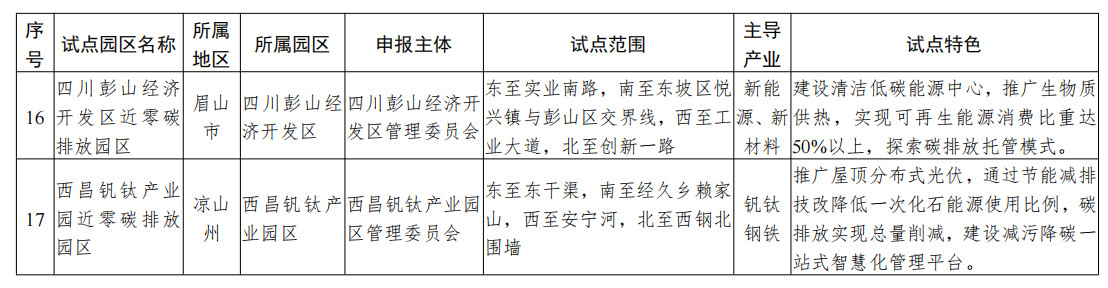 四川省公布近零碳排放園區(qū)試點(diǎn)名單!