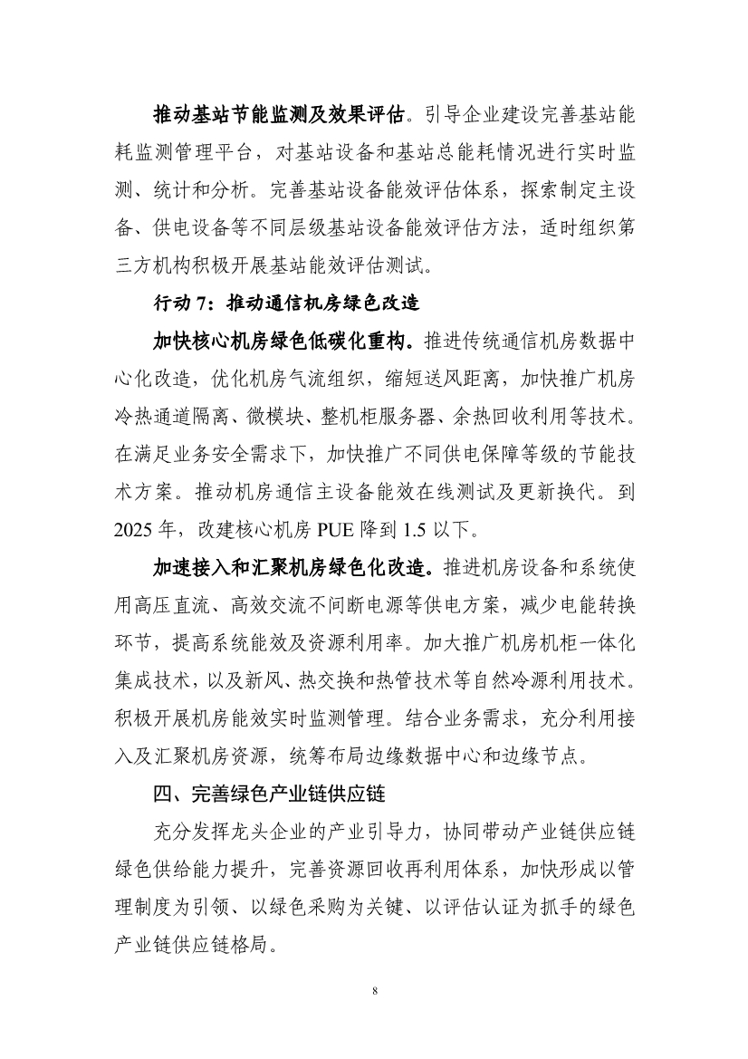 工業(yè)和信息化部等七部門關(guān)于印發(fā)信息通信行業(yè)綠色低碳發(fā)展行動計劃(2022-2025年)的通知