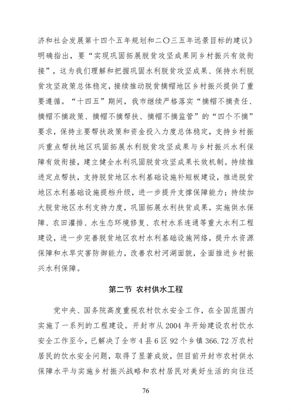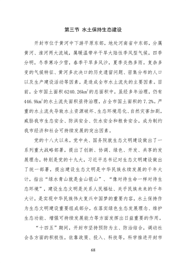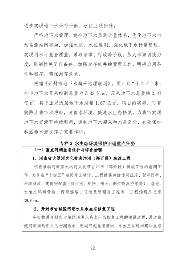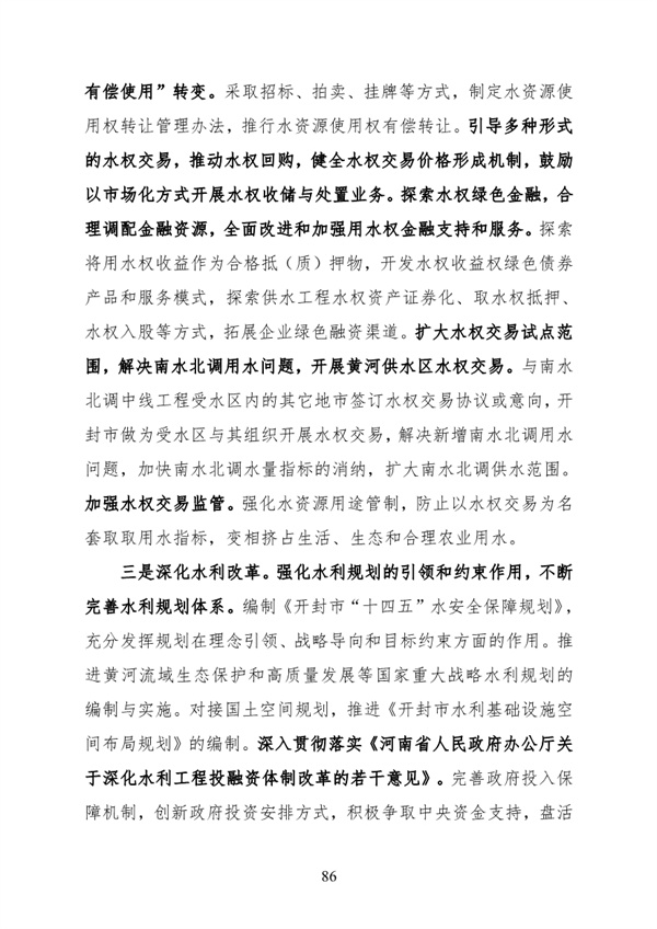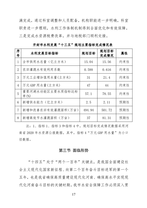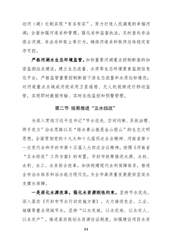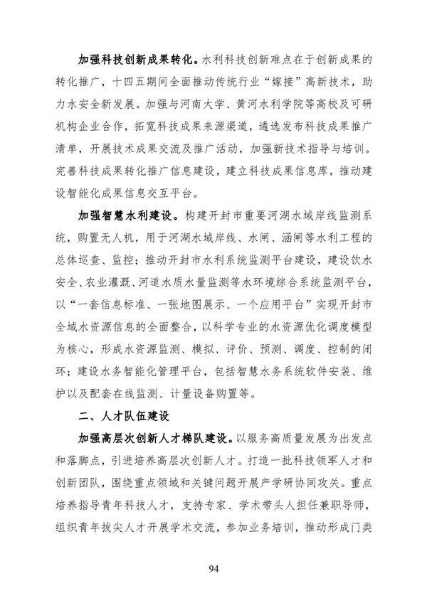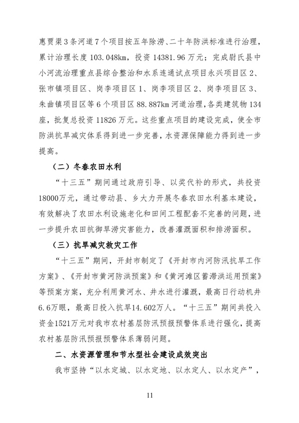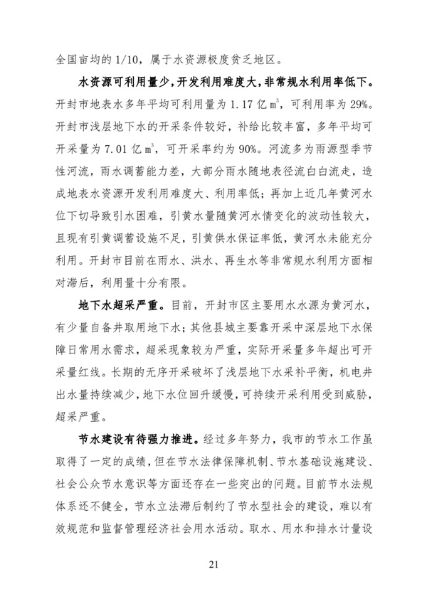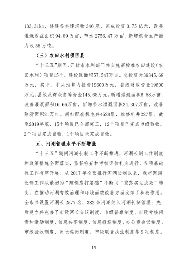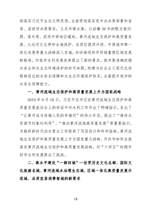 8月15日,開封市人民政府印發(fā)《開封市“十四五”水安全保障規(guī)劃》(以下簡(jiǎn)稱《規(guī)劃》)?!兑?guī)劃》系統(tǒng)總結(jié)了“十三五”期間開封市水利改革發(fā)展取得的顯著成果,確定了“十四五”時(shí)期開封市水利發(fā)展的總體思路,深刻分析了面臨的形勢(shì)和問(wèn)題,研究提出了今后五年開封市水利發(fā)展目標(biāo)、主要任務(wù)、重大項(xiàng)目安排和保障措施等,是指導(dǎo)“十四五”時(shí)期開封市水安全保障工作的重要依據(jù)。