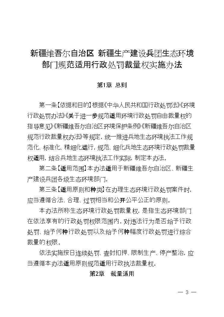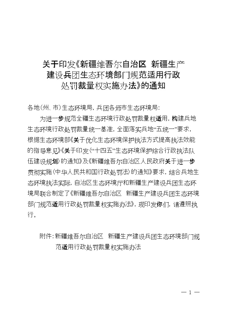 新疆維吾爾自治區(qū) 新疆生產(chǎn)建設(shè)兵團(tuán)生態(tài)環(huán)境部門(mén)聯(lián)合出臺(tái)《生態(tài)環(huán)境行政處罰裁量權(quán)實(shí)施辦法》
