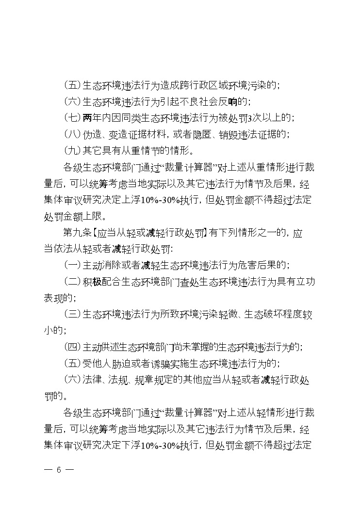 獲悉,新疆維吾爾自治區(qū) 新疆生產(chǎn)建設(shè)兵團(tuán)生態(tài)環(huán)境部門(mén)聯(lián)合出臺(tái)《生態(tài)環(huán)境行政處罰裁量權(quán)實(shí)施辦法》,《實(shí)施辦法》在原有試行辦法基礎(chǔ)上修訂而成,新增2條、保留1條,調(diào)整12條,包括總則、裁量適用、附則三章,共十四條,對(duì)涉及偷排偷放、“未批先建”“未驗(yàn)先投”、數(shù)據(jù)造假等10類424種環(huán)境違法行為行政處罰的基本原則、裁量因素、裁量基準(zhǔn)進(jìn)行了明確規(guī)定。如下圖所示: