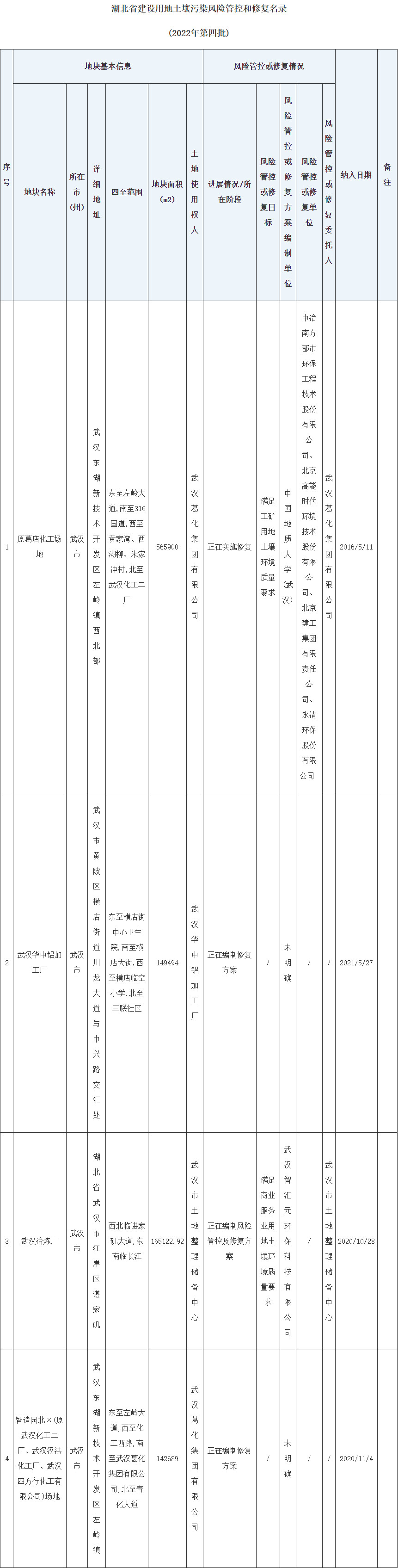 附件:1.湖北省建設(shè)用地土壤污染風(fēng)險(xiǎn)管控和修復(fù)名錄(2022年第四批)