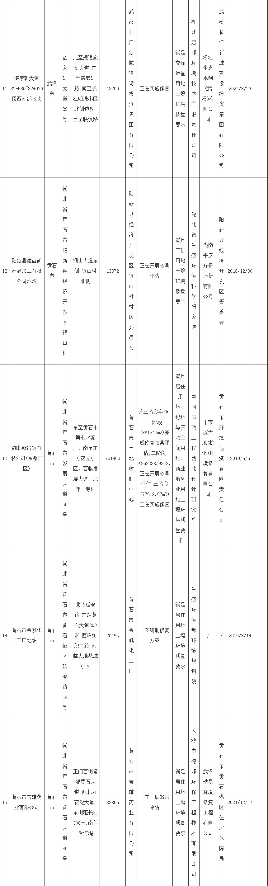 湖北省發(fā)布建設(shè)用地土壤污染風(fēng)險(xiǎn)管控和修復(fù)名錄(2022年第四批)