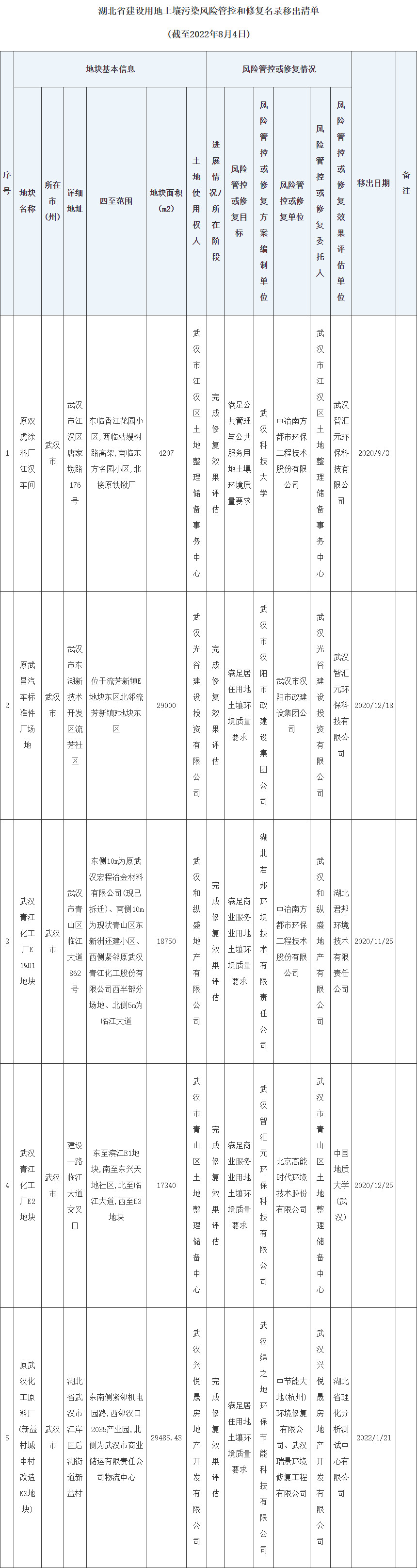 2.湖北省建設(shè)用地土壤污染風(fēng)險(xiǎn)管控和修復(fù)名錄移出清單(截至2022年8月4日)