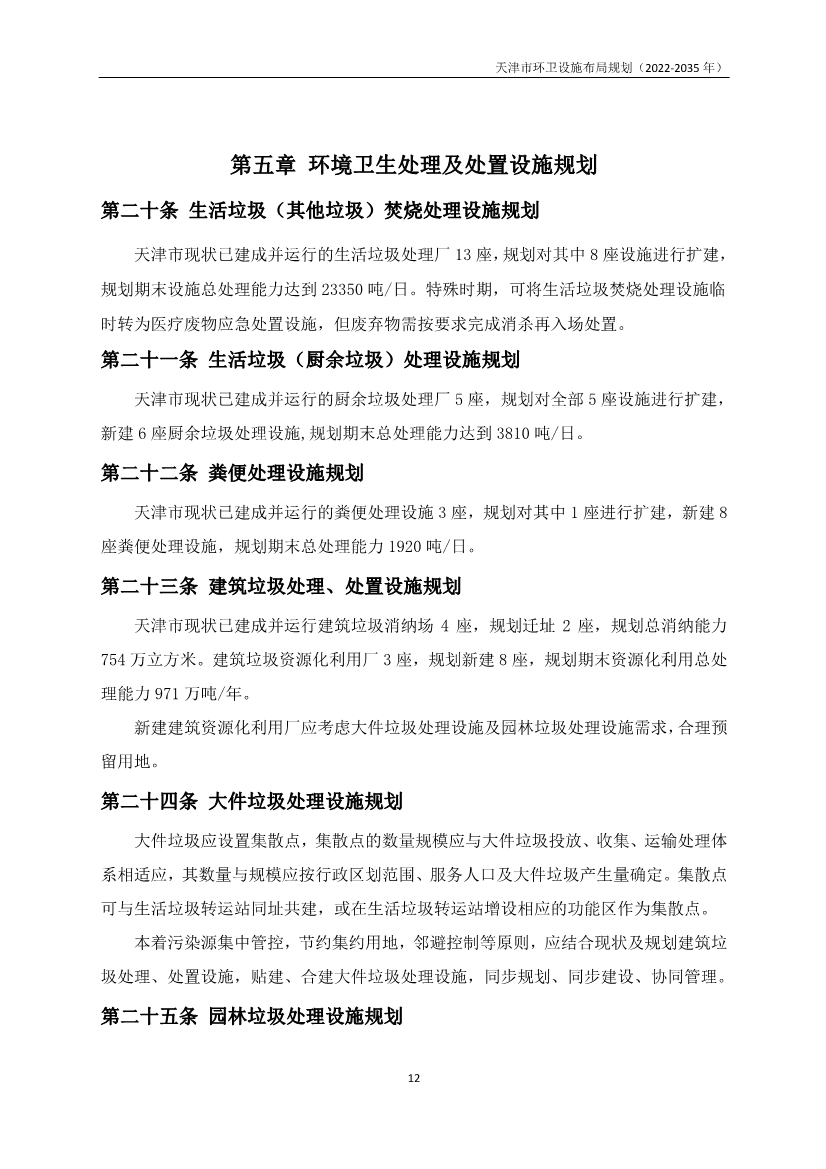 天津市人民政府關(guān)于天津市環(huán)衛(wèi)設(shè)施布局規(guī)劃(2022—2035年)的批復(fù)