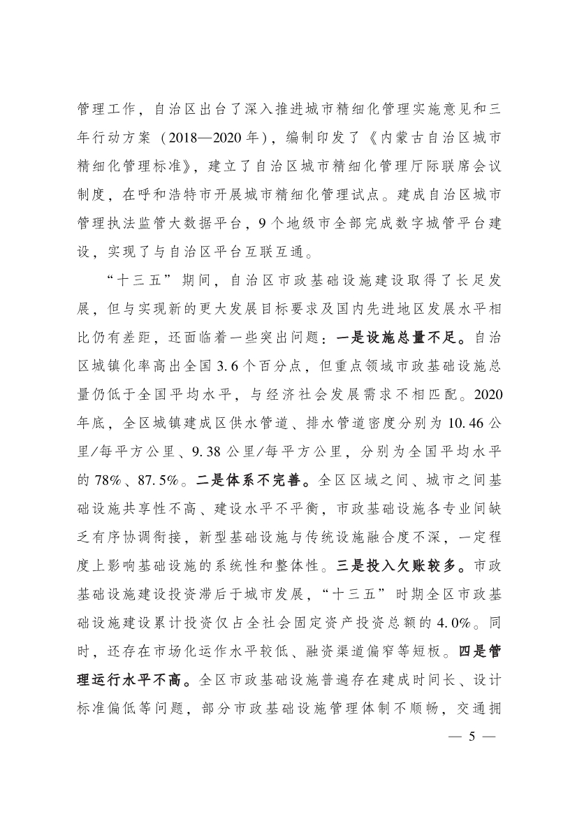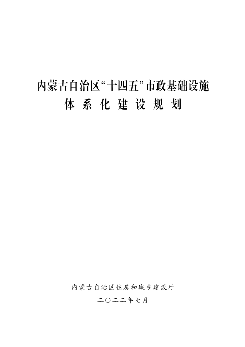 內(nèi)蒙古自治區(qū)住房和城鄉(xiāng)建設(shè)廳關(guān)于印發(fā)“十四五”市政基礎(chǔ)設(shè)施體系化建設(shè)規(guī)劃的通知