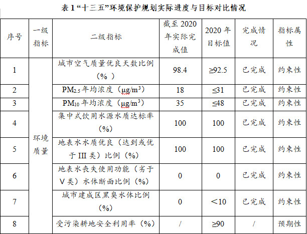 1.2.1“十三五”環(huán)保目標(biāo)達(dá)成情況