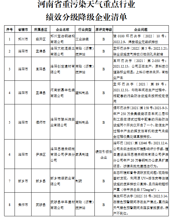 日前,河南發(fā)布關(guān)于對部分重點(diǎn)行業(yè)績效分級企業(yè)實(shí)施降級處理的通報。詳情如下:
